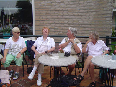 Inmiddels is het verrukkelijk terrasweer geworden. Tijd voor een borrel. De opmerkelijke ervaringen worden uitgewisseld met elkaar. Dankwoord voor alle medewerkers. Wat heel belangrijk is: er zijn 2 vrouwen gevonden die het organisatieteam van Ladies Day willen versterken. Dat gaat volgend jaar dus helemaal weer goed komen met de Ladies Day in Noord-Holland.