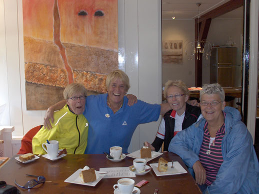 Mooie wandeling, maar wel frisjes. Een echte noordhollandse wandeling over grasdijken en langs het IJsselmeer. 15 vrouwen stapten dapper door de schapenkeutels en koeienvlaaien heen en hezen zich over talloze hekjes. Hoosbui en lunch kwamen op de juiste tijd. Dat was een echte meevaller. Ineke bedankt voor de goede voorbereiding.