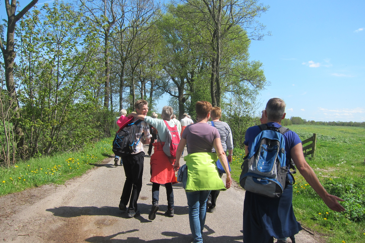 De wandeling: naar keuze 9, 12 of 17,5 km. Bezienswaardigheid onderweg: themapark De Spitkeet in Harkema. Hier kunnen we zien hoe mensen leefden en werkten tussen ongeveer 1850 en 1950 op de arme heide in Friesland en Groningen. Te zien zijn een holwoning, klokkenstoel, plaggenhut, het Waldhuske, een Woningwetwoning en het Jelle Dam hus en een lunch in het Paviljoen De Leijen.