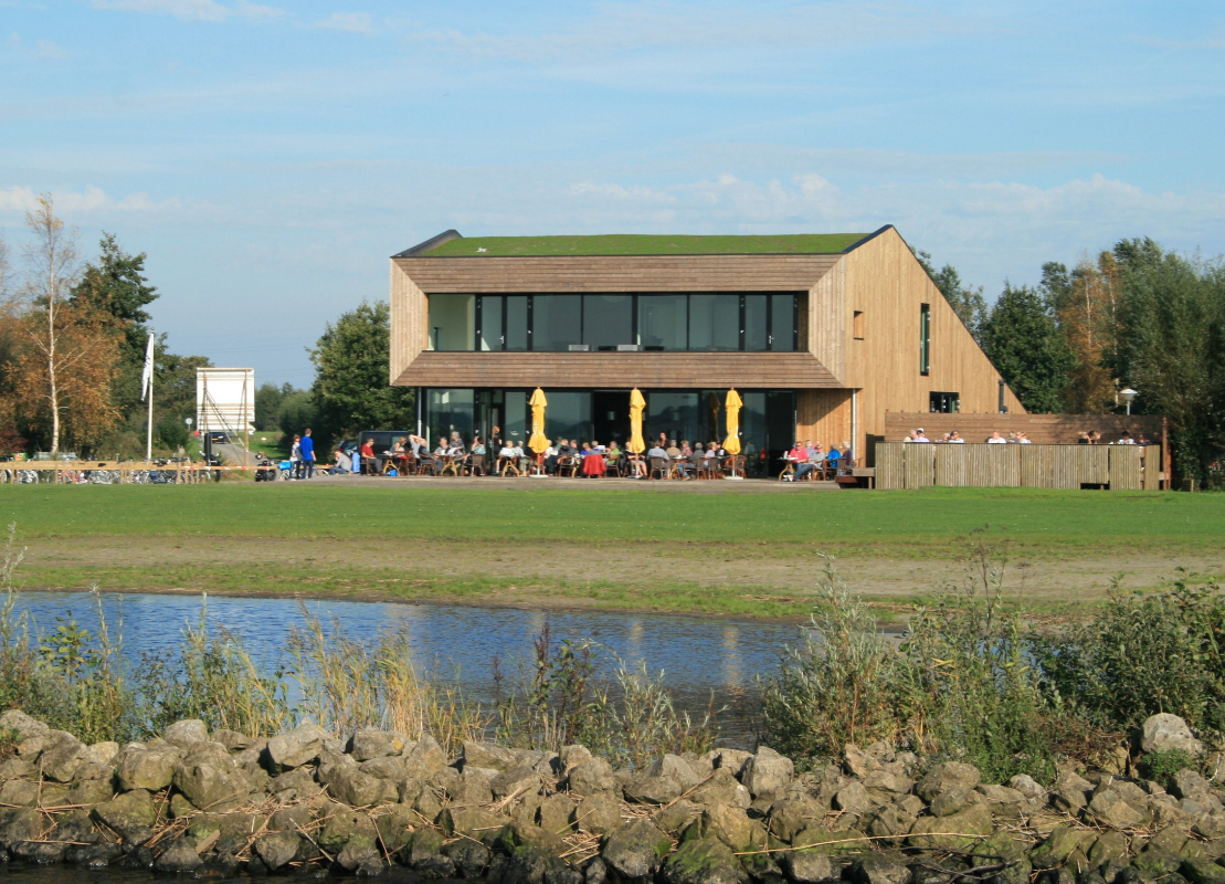 De eerste stop is Paviljoen De Leyen. Een prachtige locatie met uitzicht op De Leyen. De plas is ontstaan door veenafgraving en daarom op veel plaatsen ondiep. Er is ook een strandje, maar daarvoor is het vandaag toch net even te koud. Het Paviljoen is een trouwlokatie waardig. Voor een van ons is dit sprookje ook werkelijkheid geworden. Hier gaan de routes van de korte en de wandelaars uit elkaar.
